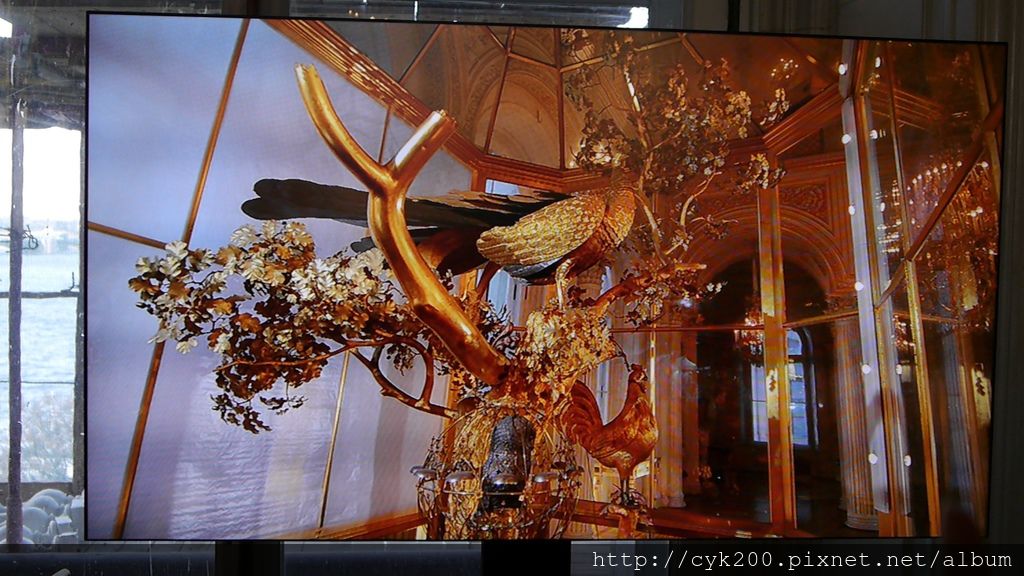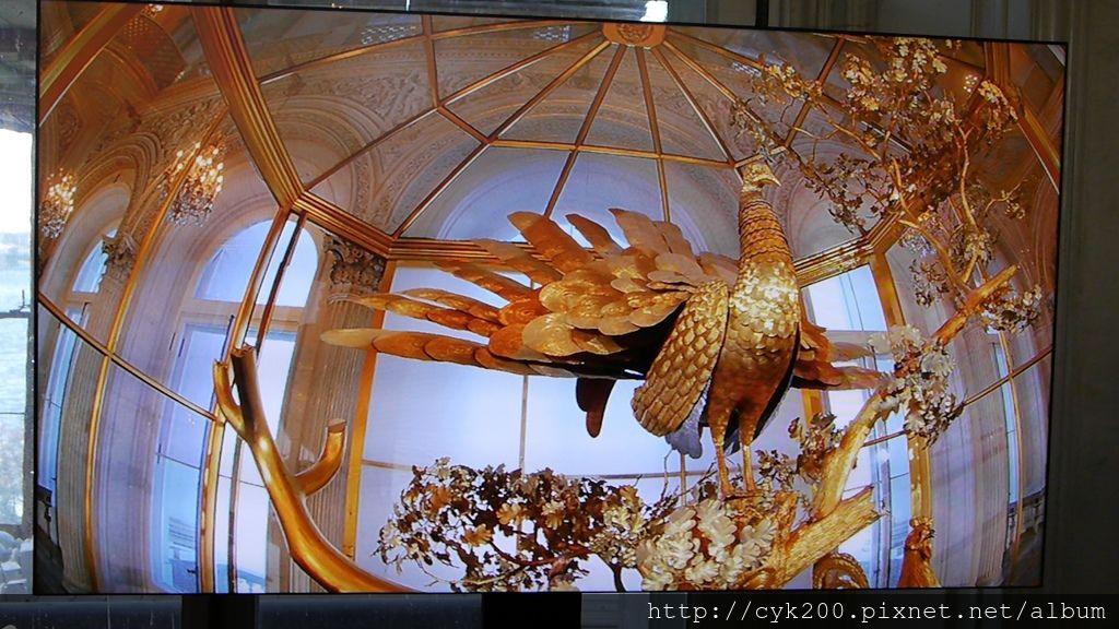 小隱士廬的閣殿(The Pavilion Hall of Small Hermitage),Room #204,水晶吊燈、James Cox 1779-81年製作的孔雀開屏時鐘the Peacock Clock、馬賽克地板