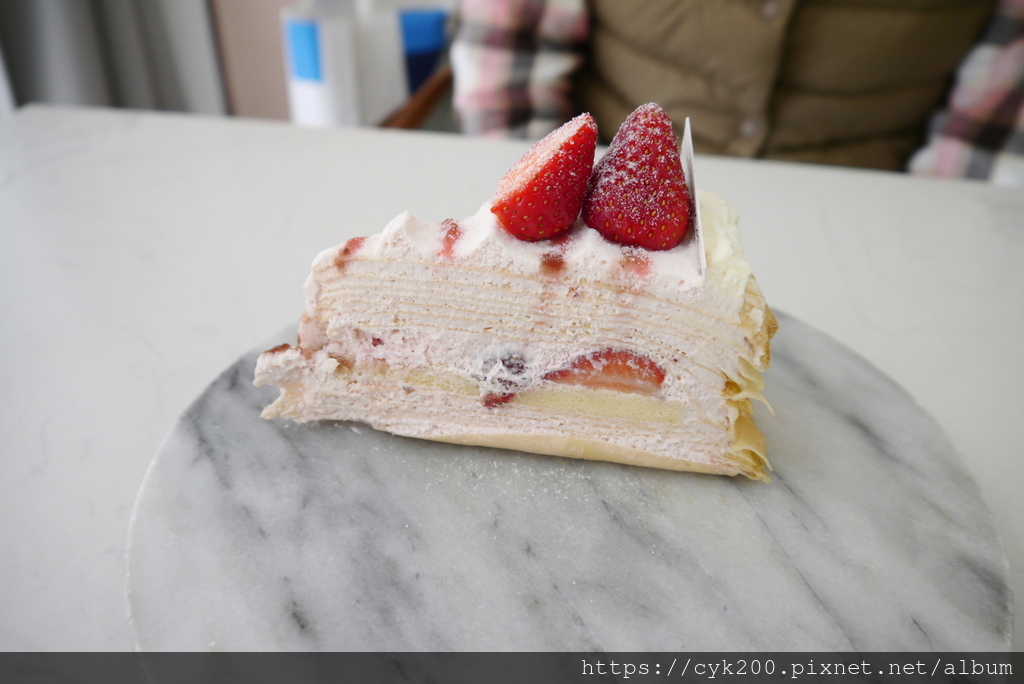 草莓千層蛋糕,NT$260。期間限定。千層蛋糕滑順鬆軟綿密,微甜不膩,絕妙好滋味。