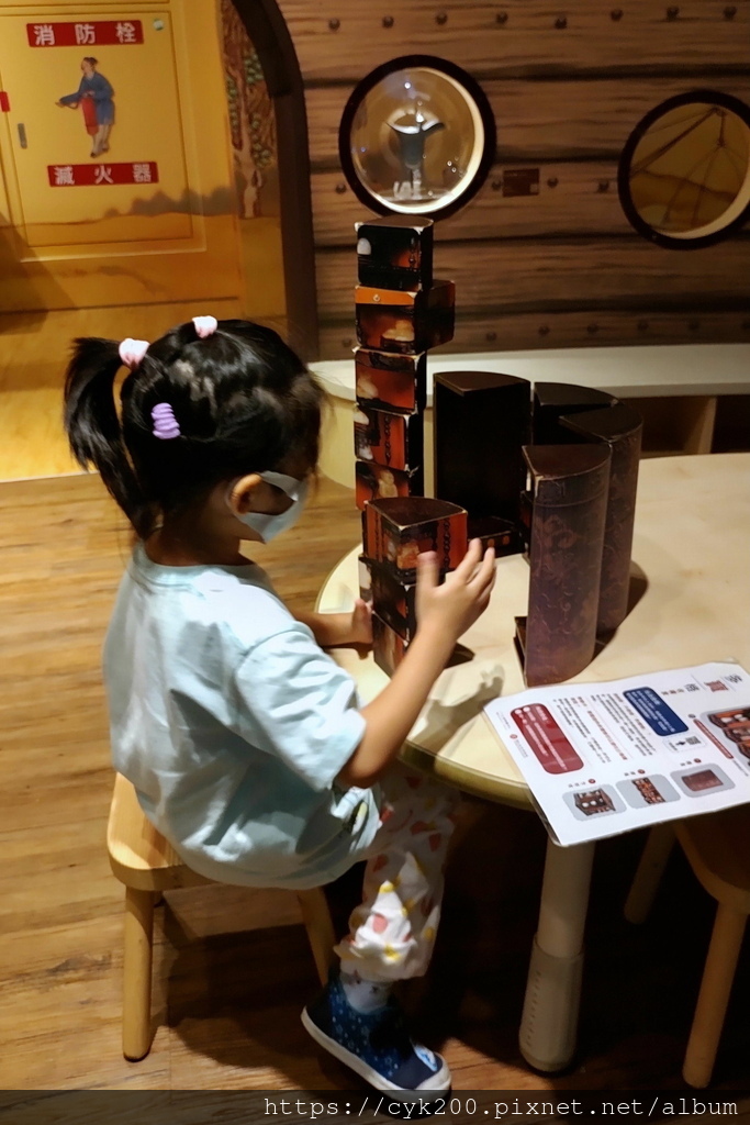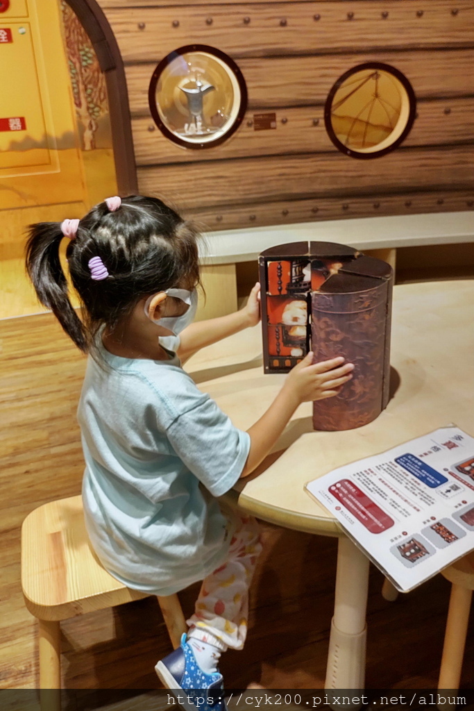 聞香品茶座:依據南宋劉松年的攆茶圖說明品茶步驟、介紹茶具。4歲半的寶貝難以理解,覺得沒意思,轉進古船造型的兒藝時光機玩多寶格積木。