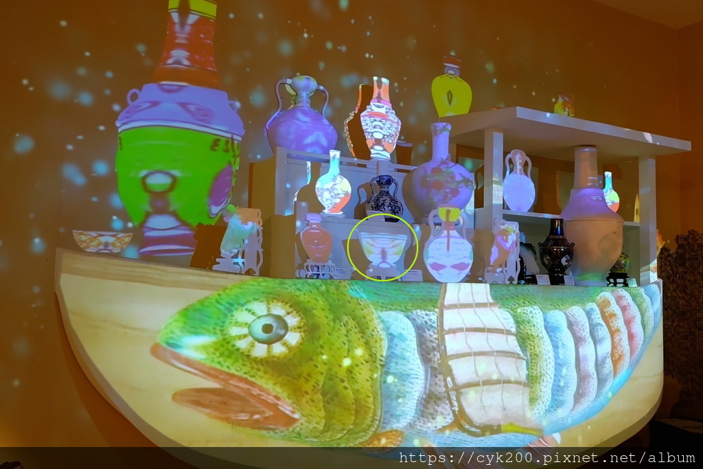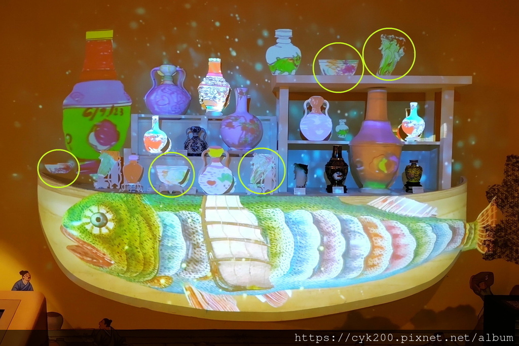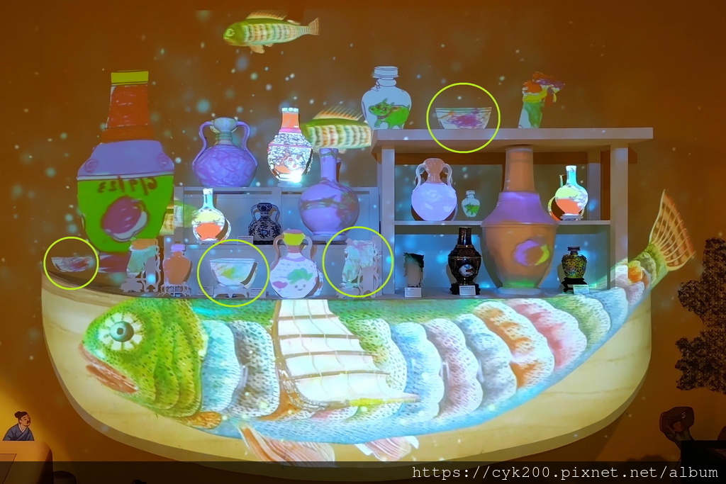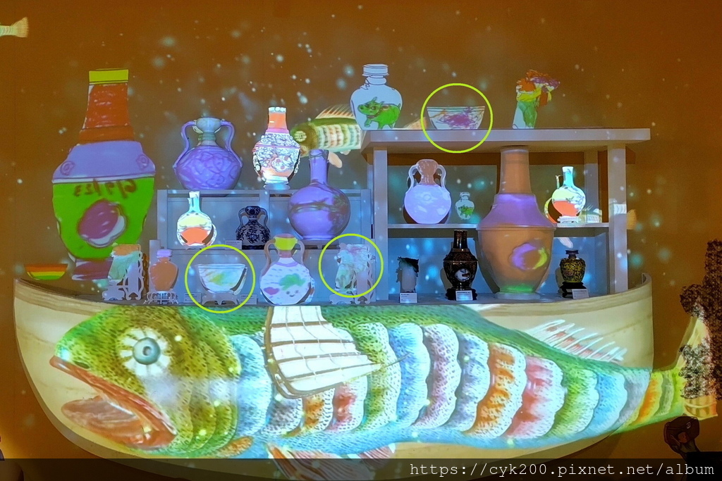 色彩收藏家:著色6樣文物,掃描上傳,投影到寶船的船首、船舷、船尾。小寶貝彩繪3張成化鬥彩雞缸杯、2張翠玉白菜。示範一次,便自己掃描,玩得不亦樂乎。