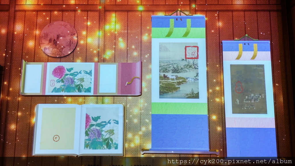 手卷、冊頁:清 惲壽平 牡丹。立軸:清 郎世寧 百駿圖、宋 宋徽宗 文會圖