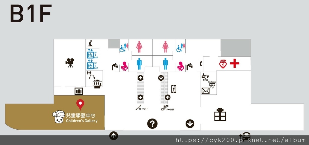 兒童學藝中心在正館B1西側 (博物館商店在B1東側)