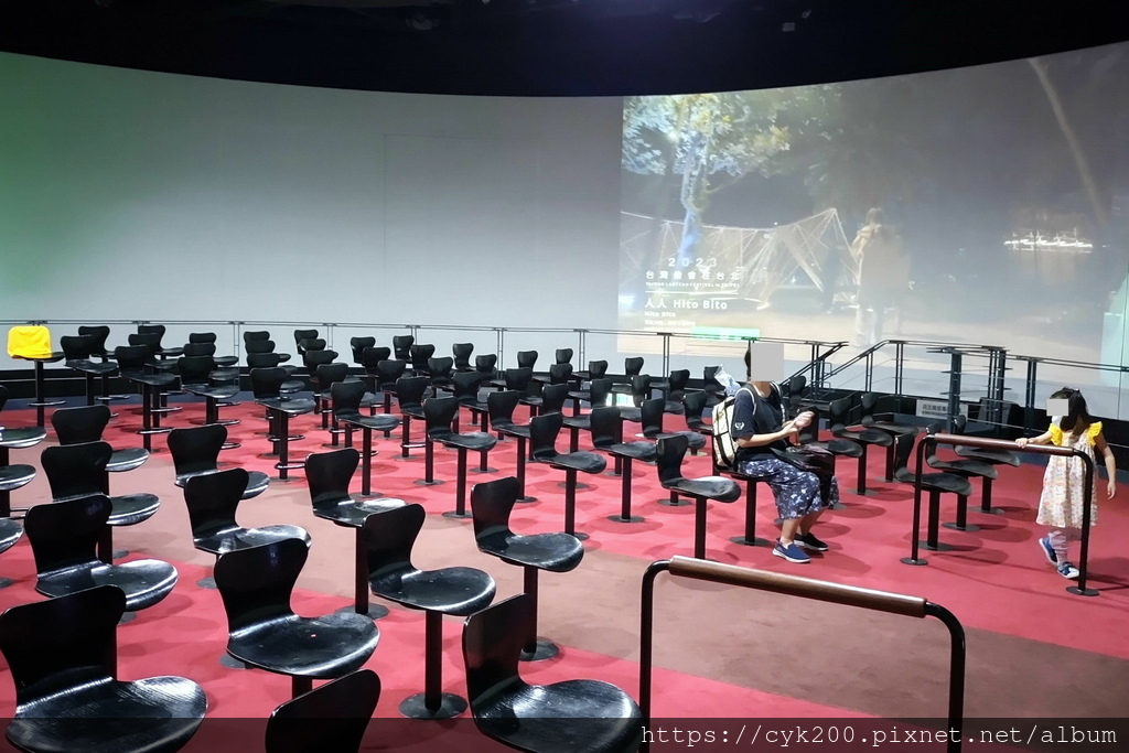 發現劇場有360度環形銀幕和旋轉平台,每半小時播放一部15~18分鐘的影片:精彩夜台北、台北好時光、城市身世、城市風采。正片播放時不可拍照攝影,場次間休息影片是台灣燈會-光源台北宣傳片。15:30播放「台北好時光」,可能因為平台會轉動很有趣,寶貝姪女乖乖看完耶~