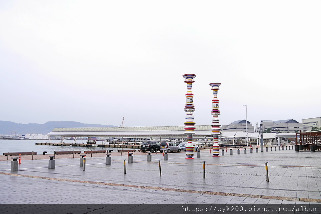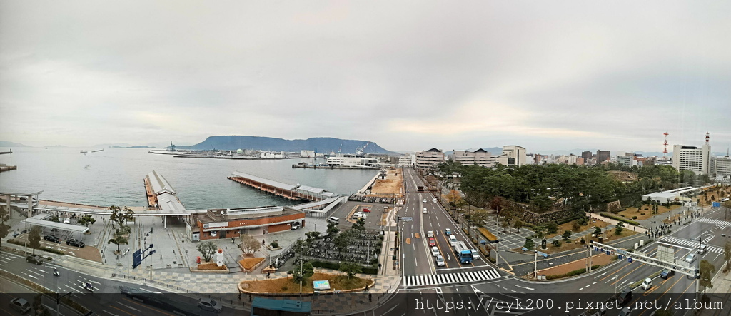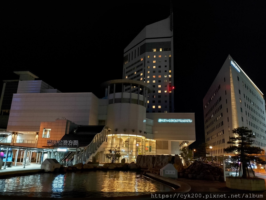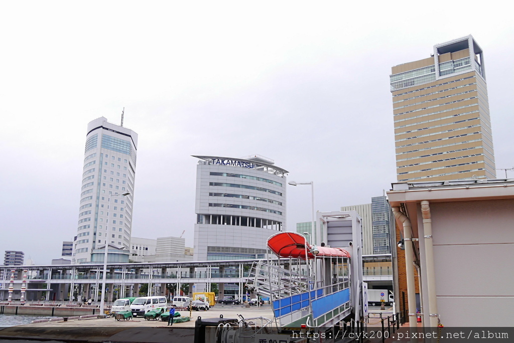 從碼頭看JR Hotel Clement、高松港旅客中心、Symbol Tower