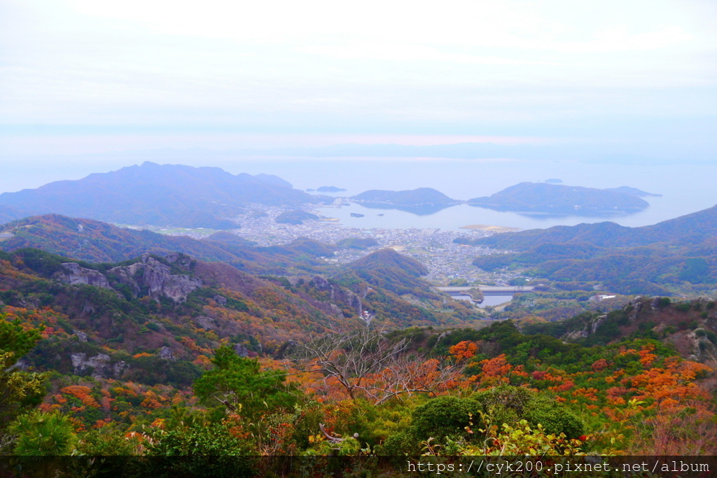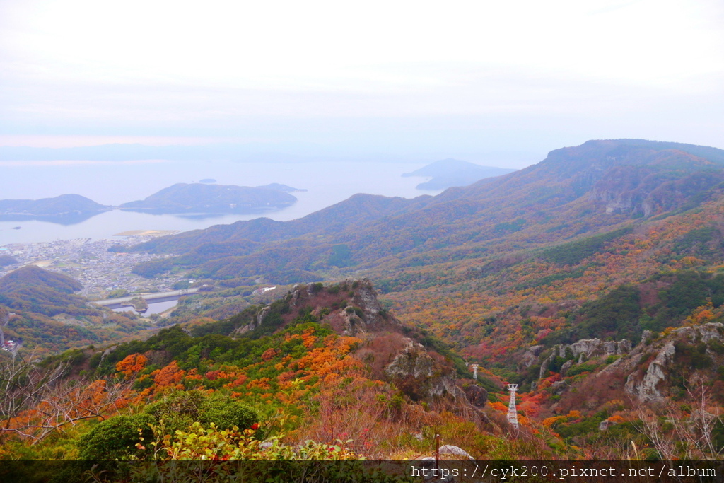 獅子的靈巖展望台,遠處是瀨戶大橋、五色台