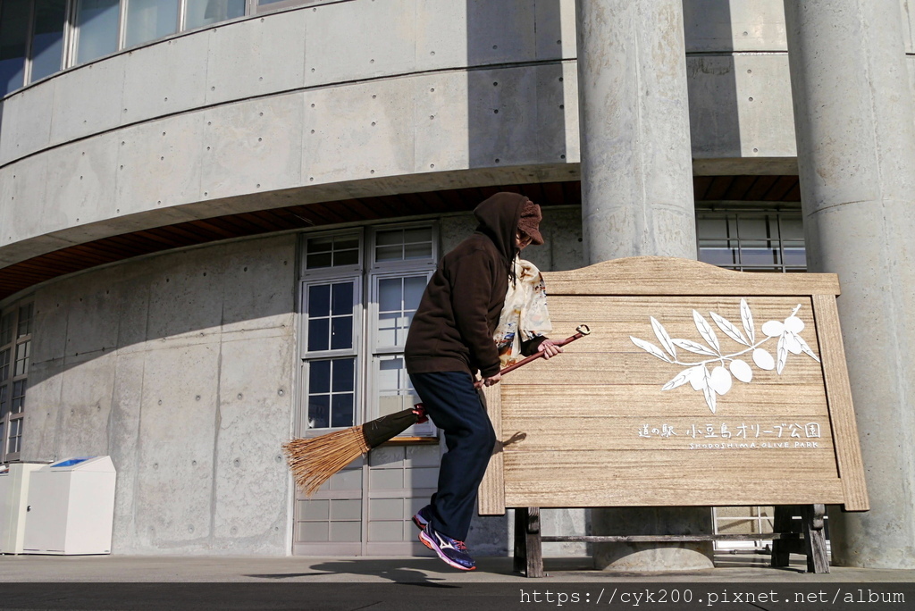 橄欖油是小豆島特產(另一是醬油),種植橄欖已近百年。橄欖公園的風光神似宮崎駿動畫魔女宅急便,園中的橄欖紀念館免費出借掃把供遊客拍照。橄欖霜淇淋有淡淡的橄欖味,一支¥300。