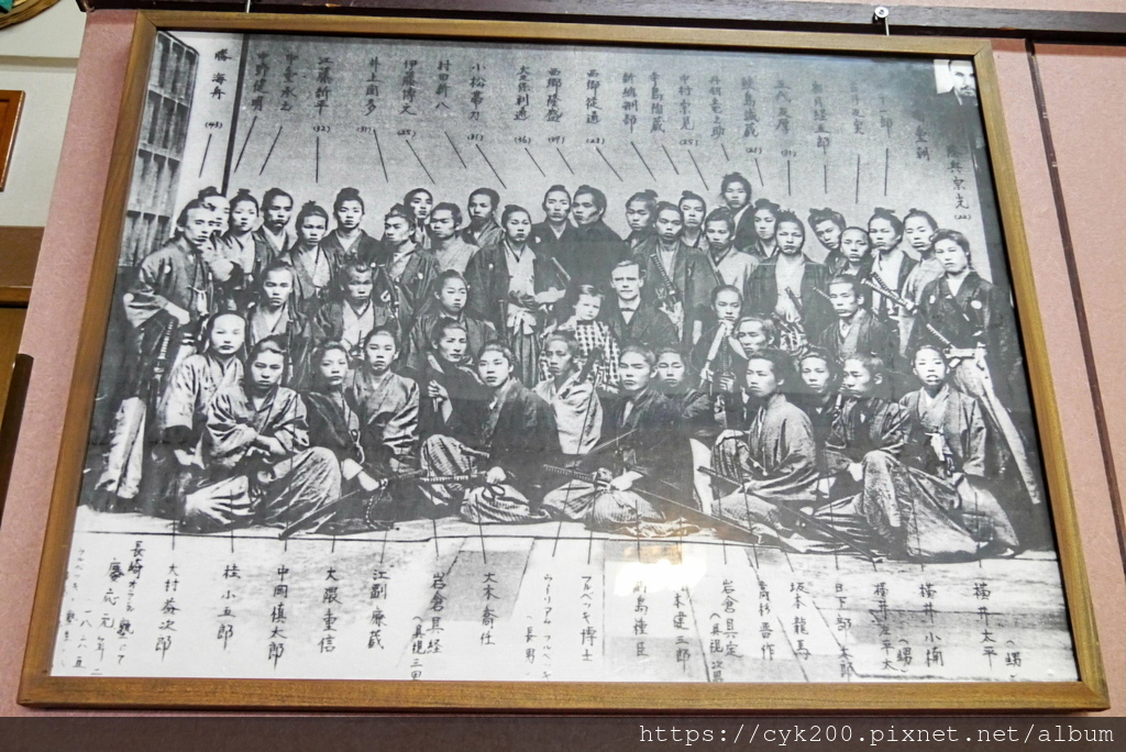 前台旁的巨幅照片是維新志士1865年合照,皆為耳熟能詳的名人