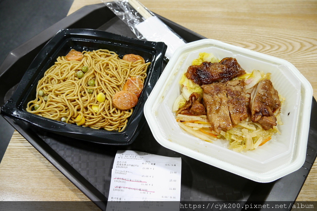 脆骨腸蔥油拌麵¥23,照燒腿排飯¥25