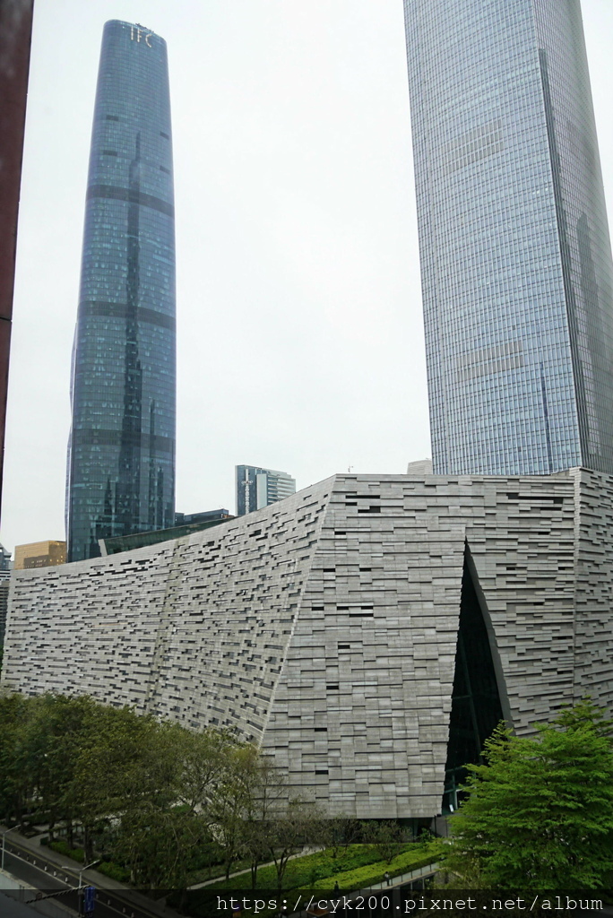 向外看廣州圖書館、廣州國際金融中心、廣州周大福金融中心