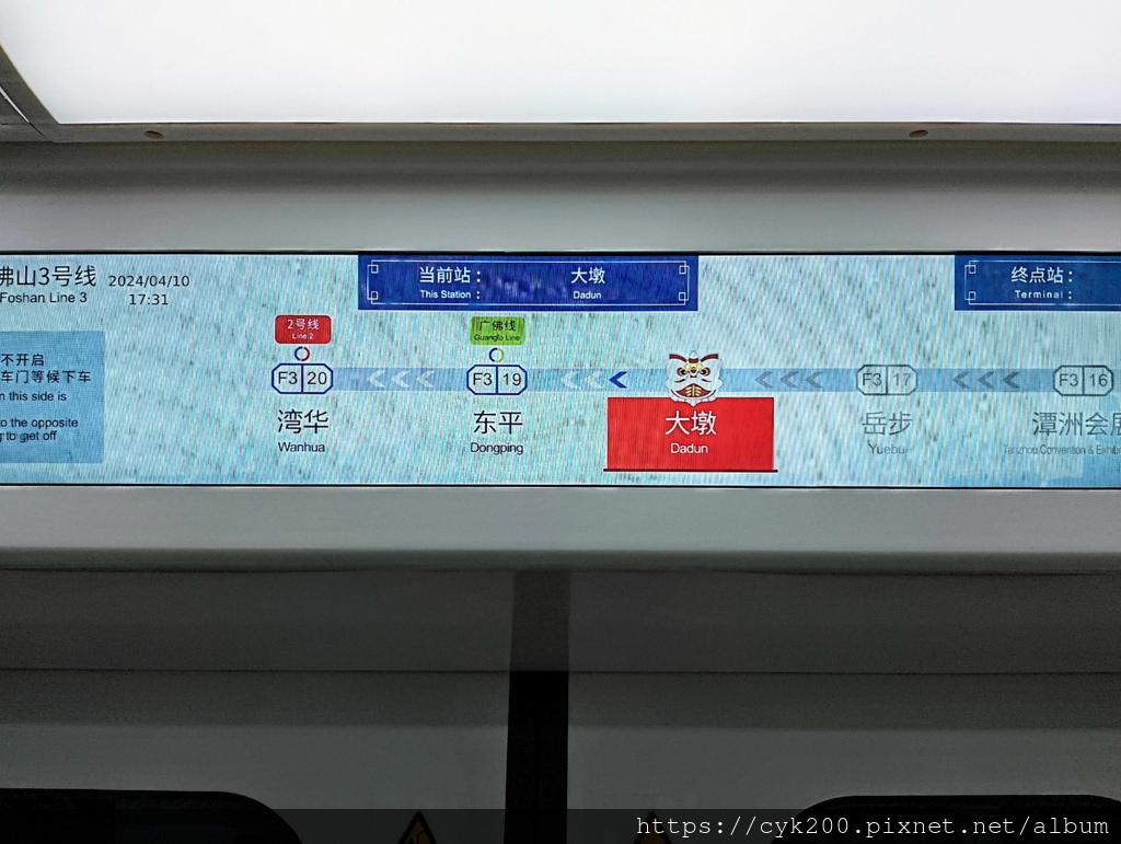 佛山 地鐵3號線,站名指示是舞獅