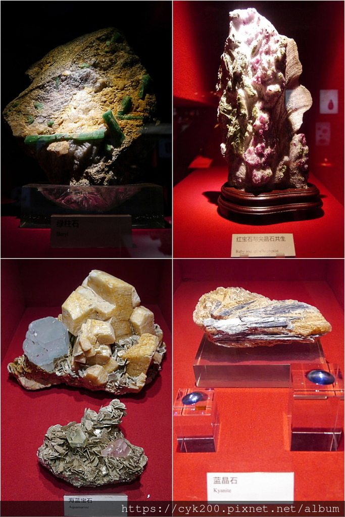 綠柱石、紅寶石與尖晶石共生、海藍寶石、藍晶石