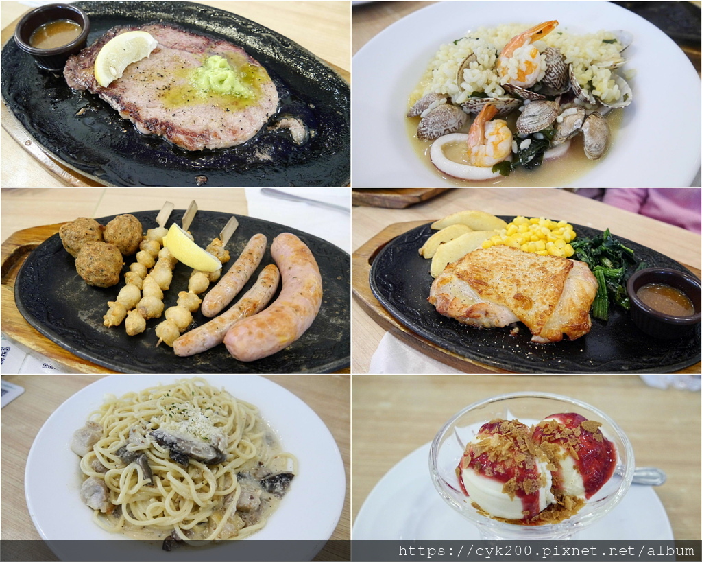 安格斯眼肉牛排(八分熟)¥59,海鮮燴飯¥16,義式小吃拼盤¥28,香烤雞排(蒜香風味)¥18,牛肝菌醬雞肉奶汁義大利麵¥22,薄脆樹莓果醬冰淇淋¥9