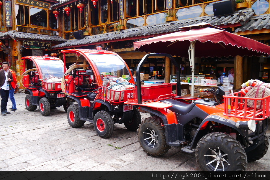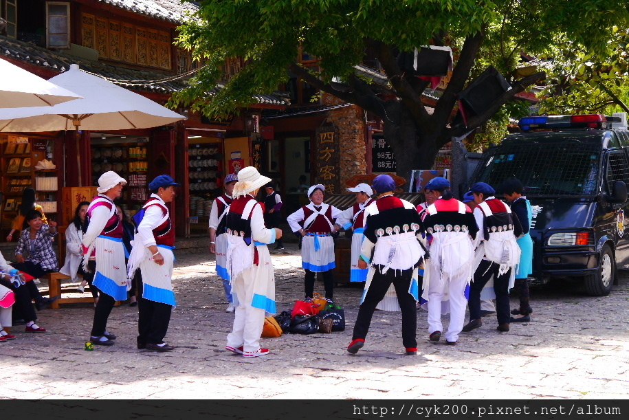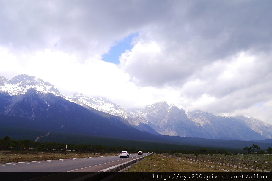 我們請古月軒客棧安排包車,一日¥300,往返玉龍雪山的路上可隨時停車拍照:10:00從四方廟會出發(車輛不可進入古城,緊鄰忠義市場的四方廟會是距古月軒客棧最近的乘車點),17:00從玉龍雪山返回麗江古城。麗江的少數民族以納西族為主,小張師傅是白族人(5/3接機的時尚美女趙師傅的表弟),高祖父那代來到麗江。服務親切有禮、導覽清楚。我們在景區遊覽時,主動發微信關心父母有否不適。回程時多花路程與時間帶我們行車遊覽麗江鄉間的玉湖村、白沙古鎮、束河古鎮,以及麗江市民的商業街:七星街。