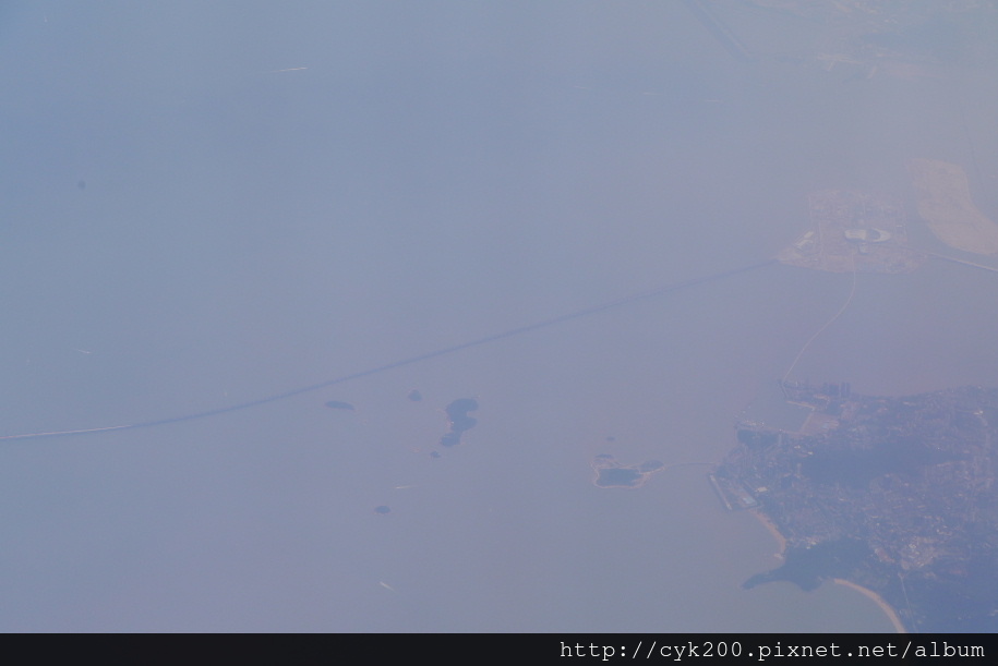 興建中的港珠澳大橋,肉眼看很清楚,拍照較模糊