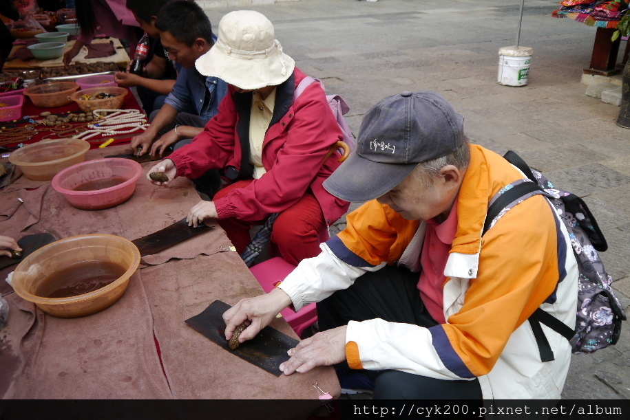 除了這裡,我們在昆明其他地方沒看到賣菩提樹子讓客人磨的攤子。此外,麗江或大理都是賣已加工完成的飾品或鑰匙圈。