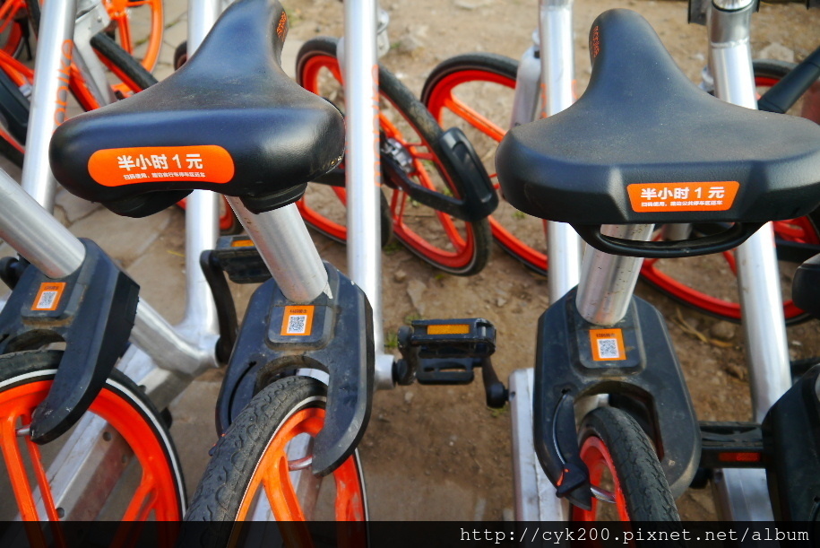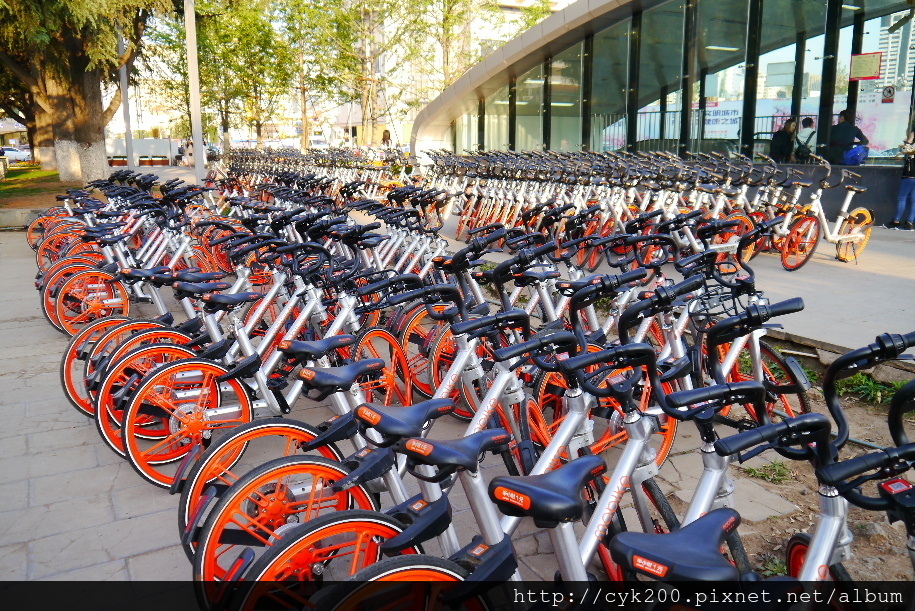 東風廣場地鐵站旁的共享單車(類似YouBike)