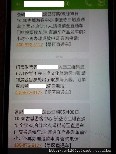 崇聖寺位於大理古城洱海門西北方3公里,雲遊客驛站的小美幫我們預訂景區直通車與門票,景區直通車單程¥5/人(買來回票沒折扣),配套的門票¥99(原價¥121)。景區直通車由位在古城南門外東南角的遊客中心出發,預約好班次,電瓶車會到古城各處接駁客人到遊客中心。若像我們一樣不確定回程時間,可到崇聖寺的景區直通車服務處買返程車票,每半小時一班,遊客多時會開加班車。返程在遊客中心下車後,沒有電瓶車接駁遊客到古城內。