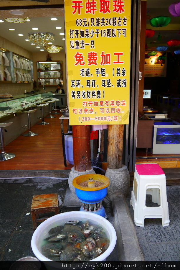 有數種價格,我們挑的是最便宜的¥5/顆。可以現場請老闆磨或自己磨,或回家用粗砂紙+細砂紙磨。原本的外皮就像樹皮,用粗砂紙把外皮磨掉,紋路就出來了,磨過頭還會把紋路磨不見。因為是天然的,每顆都不一樣。先用粗砂紙把外皮磨掉,再換細砂紙磨光滑。完成後,老闆會幫忙打洞以便客人回家做成飾品。